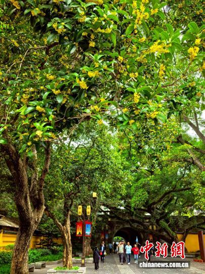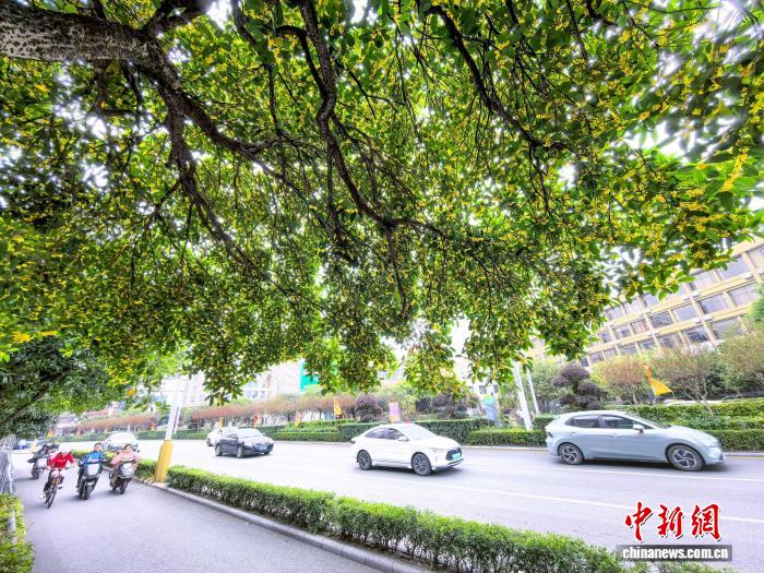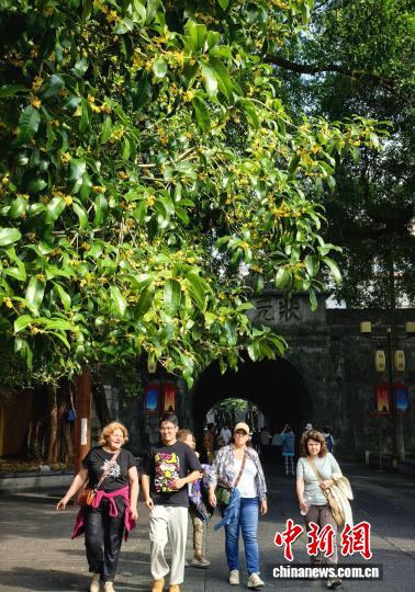 图为桂林靖江王乡汗青文明旅行戚忙街区的木樨开放。李腾钊 摄
